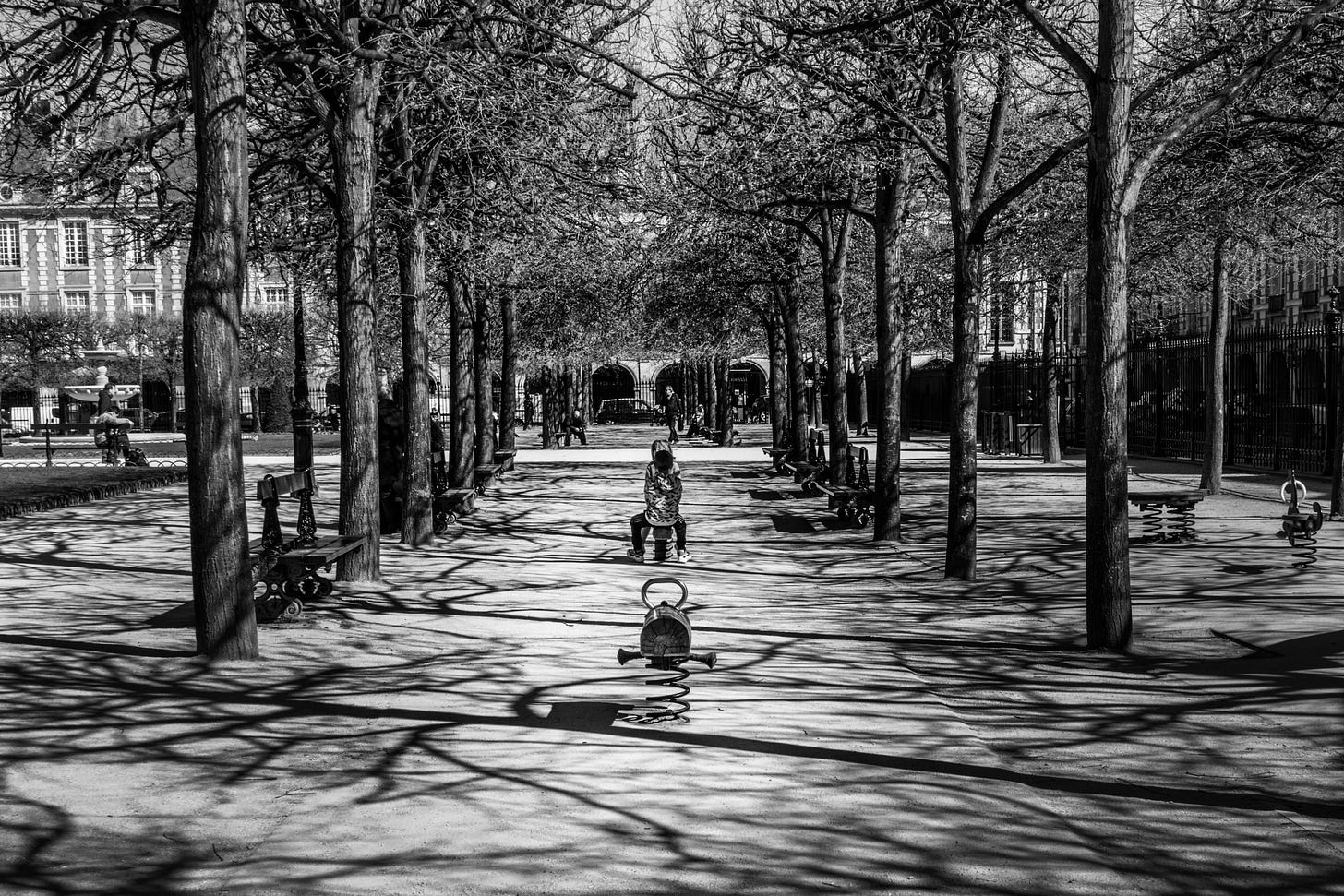 The shadows were truly wonderful, like claws pulling you in, especially around Place des Vosges in Le Marais. Again, within a few weeks, there would be far too many people to even consider shots like these.